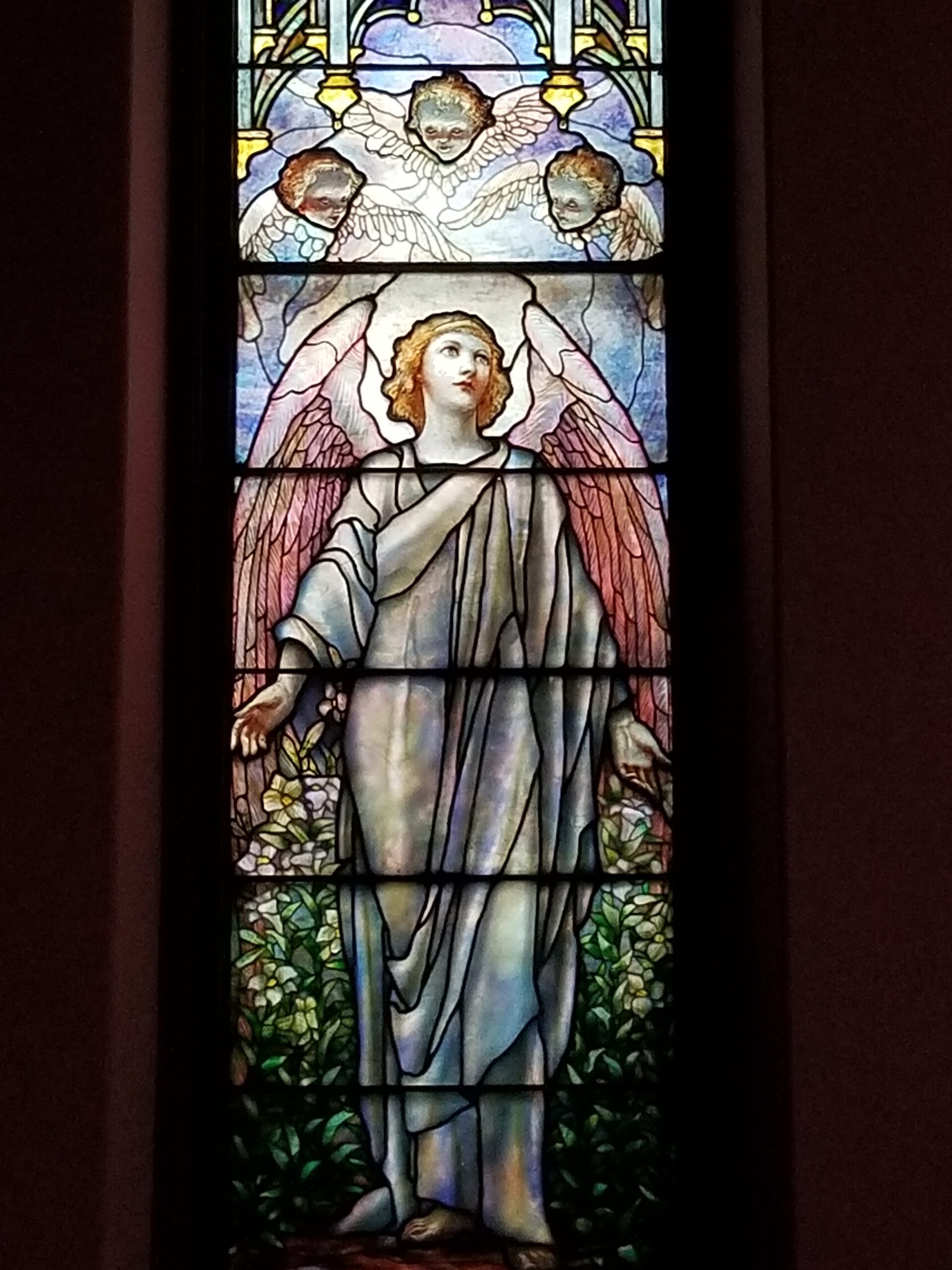Clements painted most of the work on specially woven canvas in her Bryn Mawr studio, where she taught from 1895 to 1908. In a touching connection to our congregation, Bryn Mawr students served as angel models, including 2 Trinity members: Arabella Hambleton and Alice Wolf.